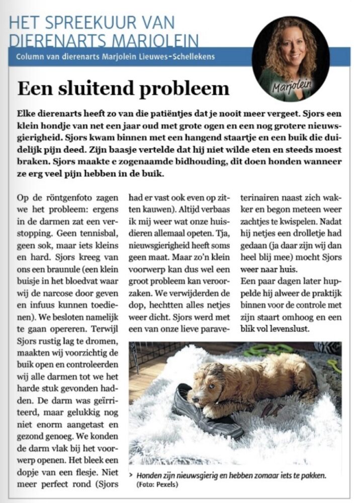 Lees hier de nieuwste column van onze dierenarts Marjolein Lieuwes-Schellekens.